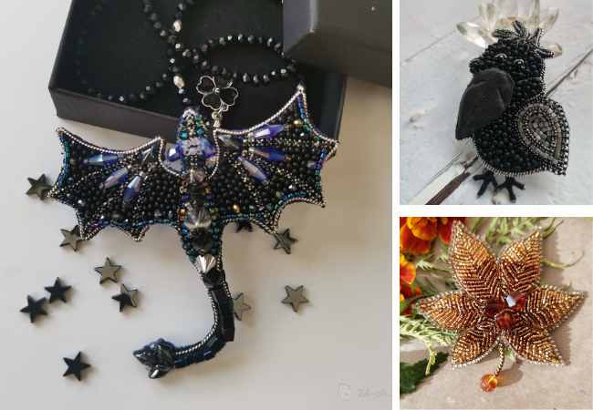 Броши из бисера в наличии и под заказ