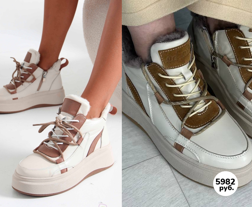 Бежевые ботинки - натуральная кожа и МЕХ