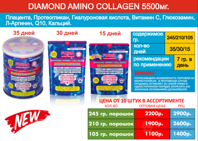 Содержит плаценту, протегликан, гиалуроновую кислоту, Л-аргинин, Q10, глюкозамин, Витамин С и кальций