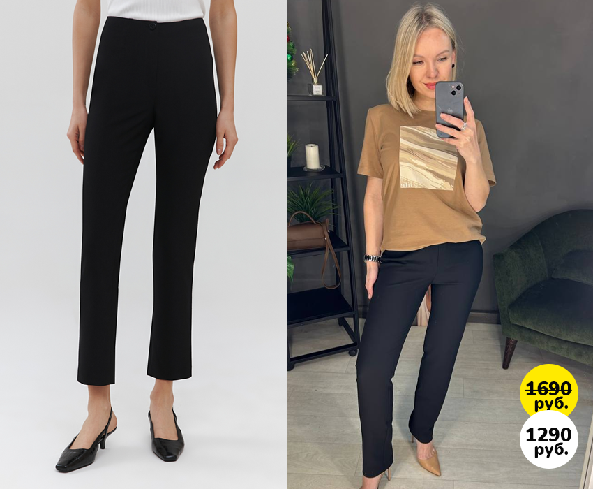 Находка - брюки 9/10 на мой рост 162 см выглядят как полноценная длина. Ткань плотная, но все-таки не зимний вариант. Идут в размер!