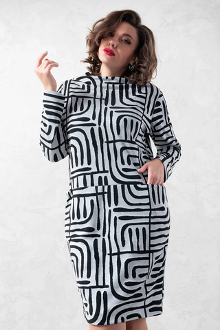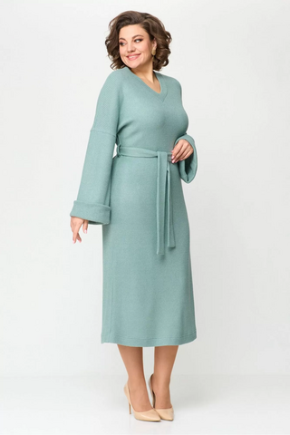 Платье прямого силуэта, выполнено из трикотажного полотна в рубчик
