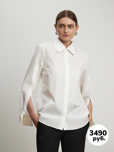 Рубашка с галстуком и необычным кроем рукава. Воротник имеет дополнительную жетскость. Галустук отстегивается