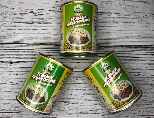 тушенка содержит небольшое количество жира и хорошие куски мяса.