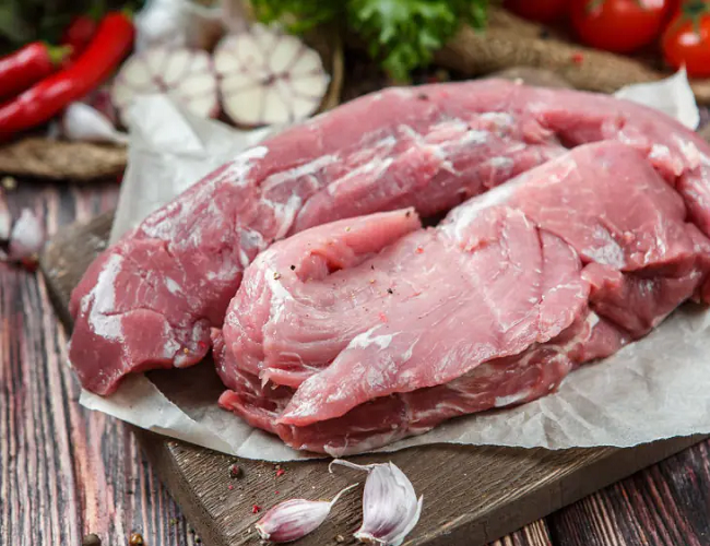в отрубах и без кости- окорок, вырезка, шея и карбонат.