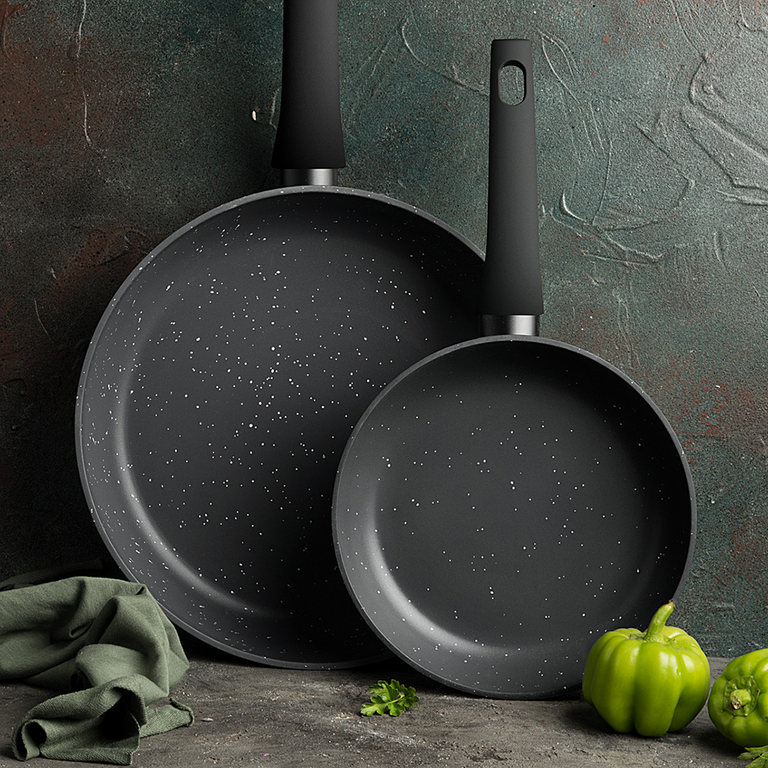 Посуда серии Agata изготовлена из кованого алюминия со специальным 5-слойным антипригарным покрытием QuanTanium на основе титана. Покрытие нанесено внутри и снаружи изделий, оно не содержит вредных веществ и совершенно безопасно. Покрытие настолько прочное, что позволяет использовать при приготовлении пищи неострые металлические кухонные инструменты. Корпус из кованого алюминия обеспечивает устойчивость на плите, плотное прилегание и равномерный нагрев. Сковорода не деформируется от частого использования и нагревания. Ручка не нагревается, а специальное покрытие "софт-тач" предотвращает её выскальзывание из рук.
