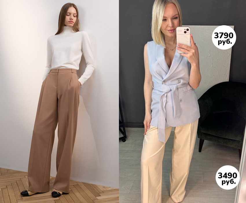 Брюки идут в размер. Приятная ткань и очень красивые на вид. Приятный бонус - резинка, вшитая на спинке, что обеспечивает отличную посадку!