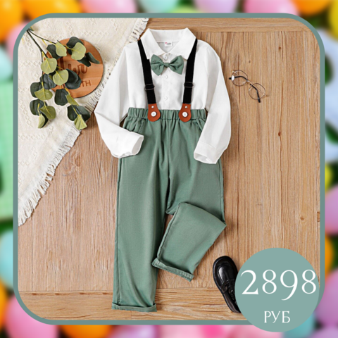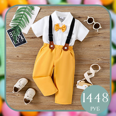 2pcs Kid Boy Bow Tie Long-sleeve Shirt and Suspender Pants Set
