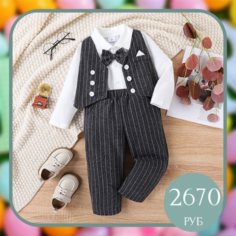 3 PCS Toddler Boy Secret Button Design Striped School Costume Set