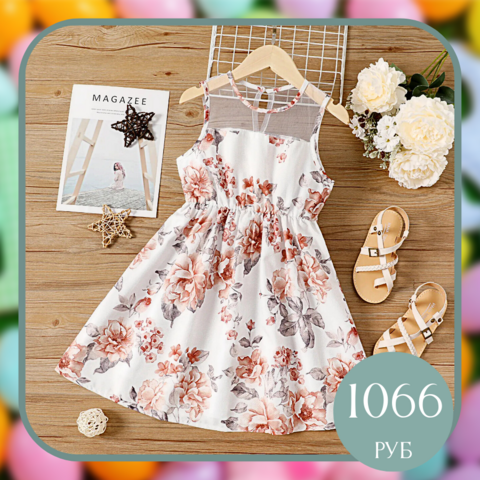 Kid Girl Floral Print Mesh Design Sleeveless Dress