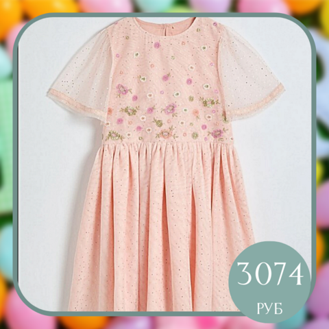 Pink Embroidered Mesh Party Dress (3mths-10yrs)