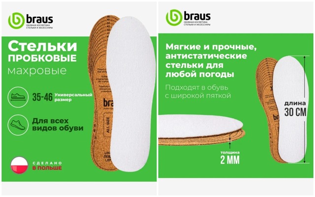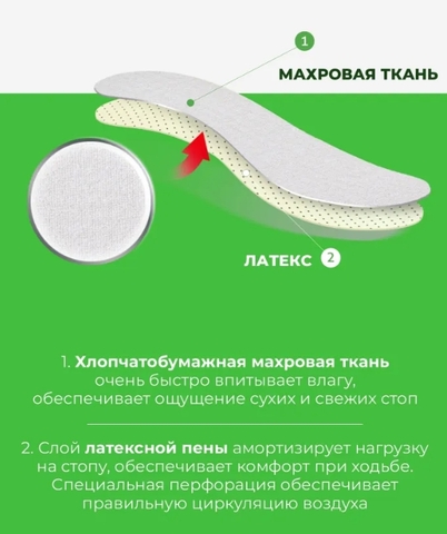 BRAUS Стельки FROTTE (махровая хлопковая ткань "Фротте"+мягкий латекс)