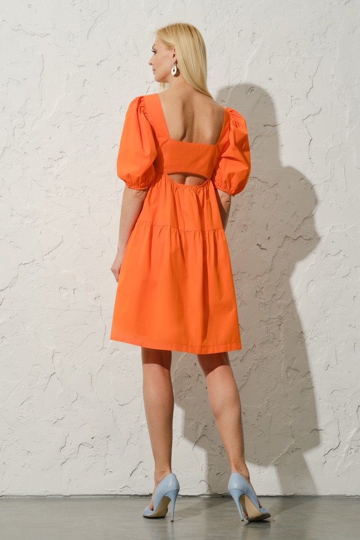 Модный оранжевый в платье с открытой спинкой за 2000-0