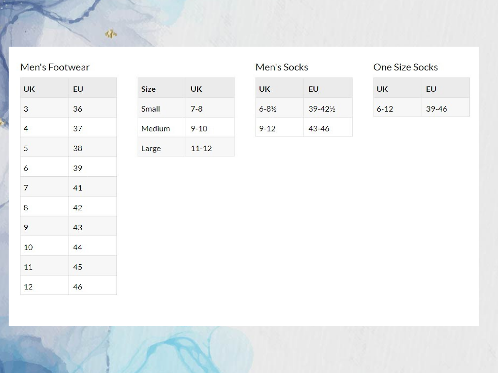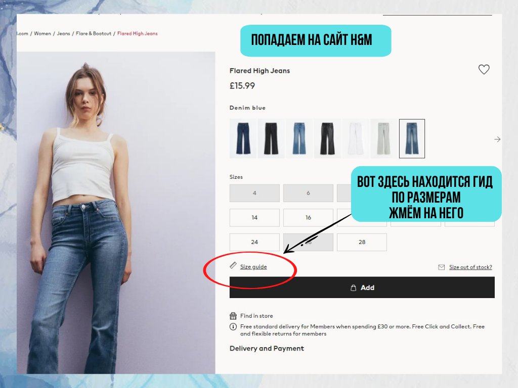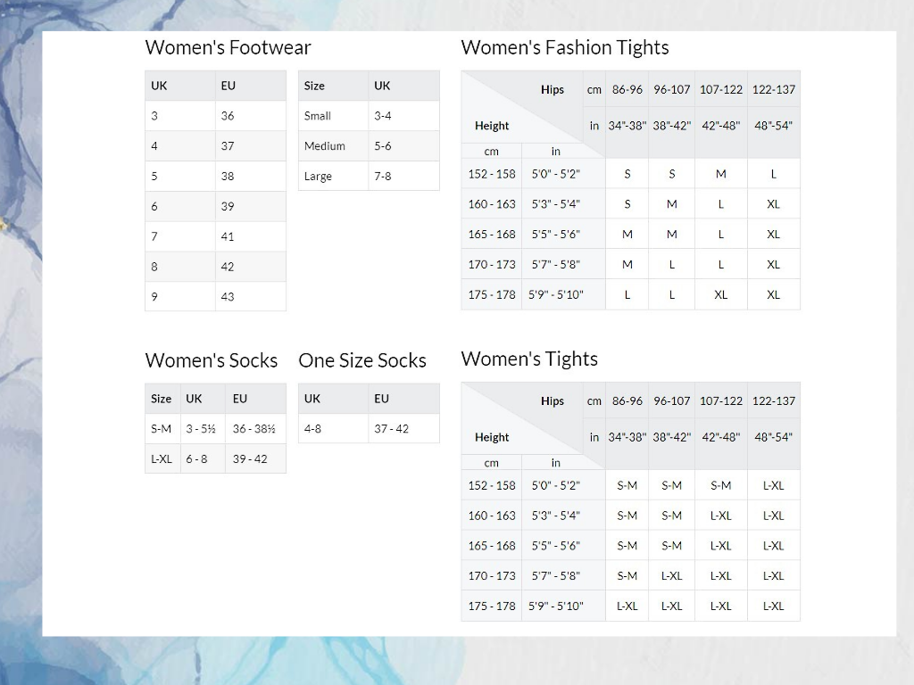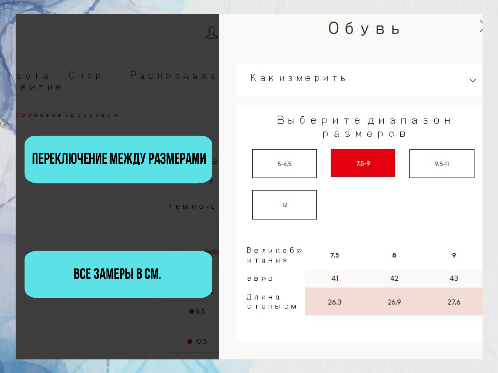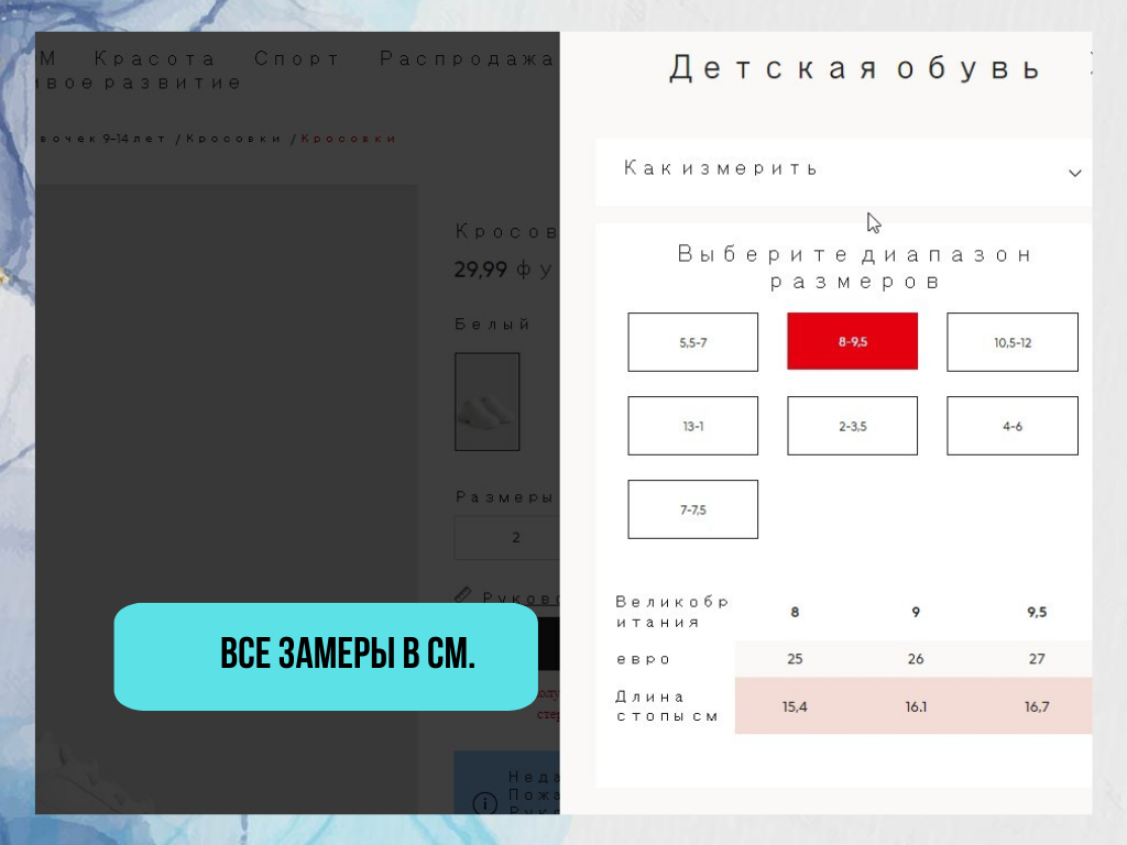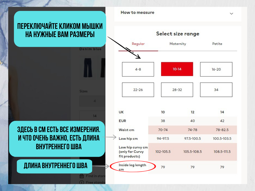 У ASDA очень большое и подробное руководство по размерам, всё оно даже не поместилось на картинку