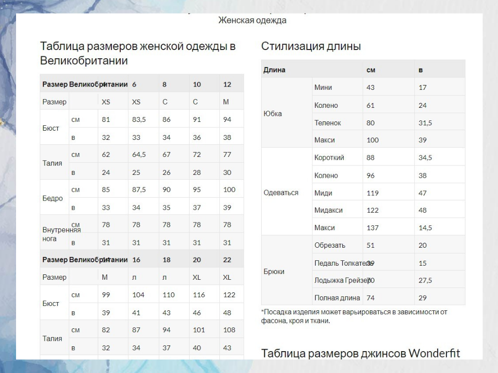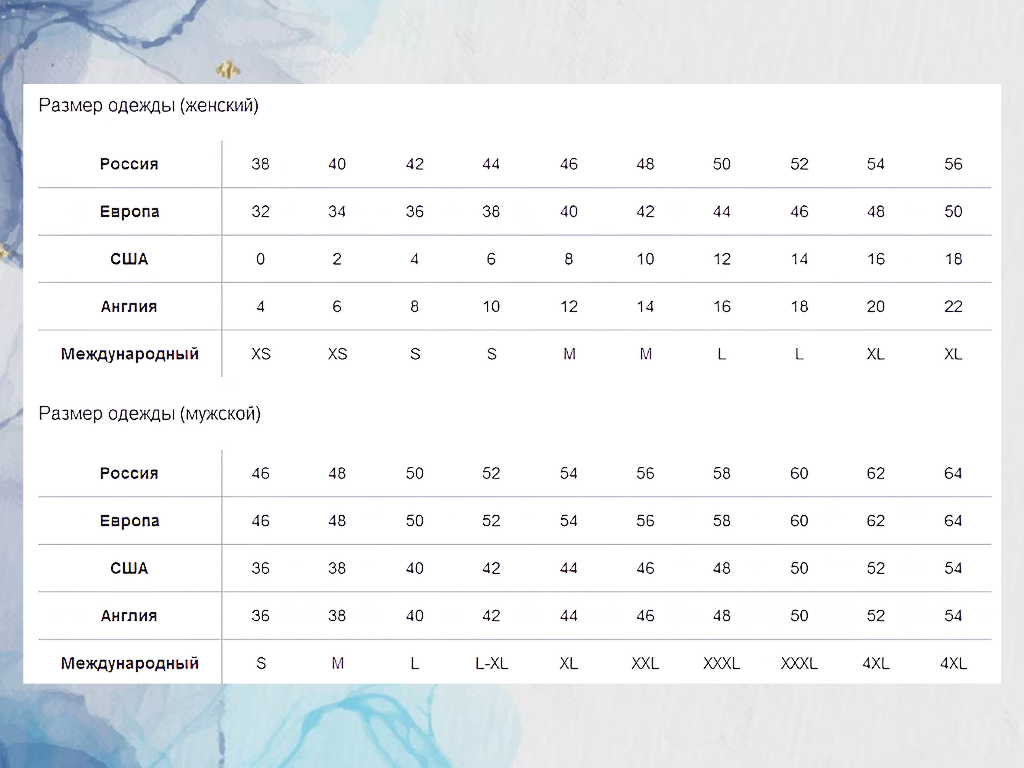 Для начала покажу вам общепринятые соответствия английских , международных и российских размеров.