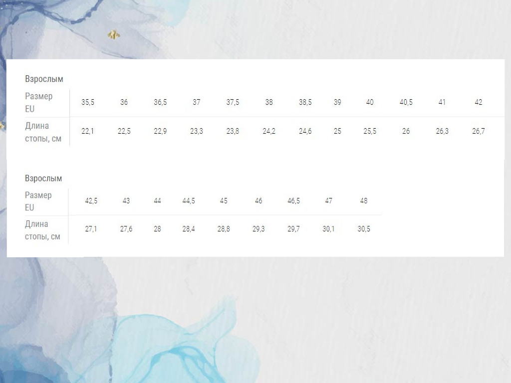 всё то же самое, можно понять размер ,измерив длину своей стопы.