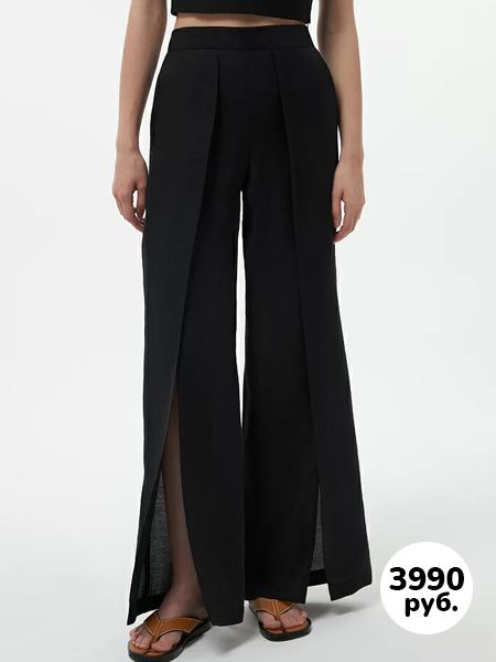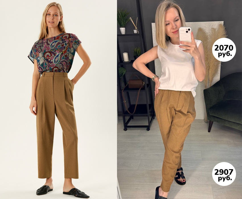 Брюки с защипами чуточку большемерят. В составе хлопок и лен. Красивая ткань! Идут как укороченные!