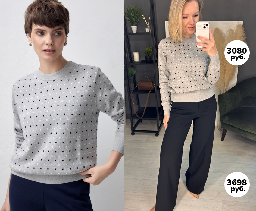 Чудесный джемпер из хлопка. Очень приятно тактильно. 42-й размер сел на 44, но без запаса. Подойдет и на 42 и на 44.