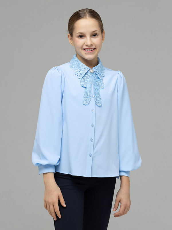 1003 Блузка для девочки с длинным рукавом в голубом цвете 713 руб!