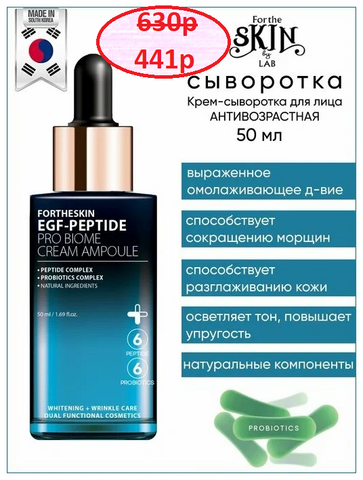Оно содержит EGF-пептиды и пробиотики, которые помогают улучшить упругость кожи, уменьшить морщины и выровнять текстуру. Крем-сыворотка эффективно увлажняет, питает и восстанавливает кожу, придавая ей здоровый и молодой вид.