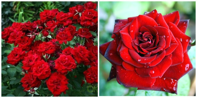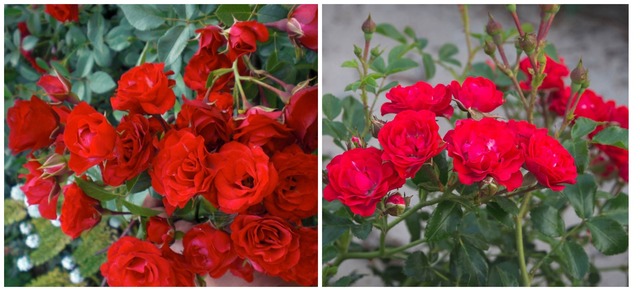 насыщенного, сияющего, кроваво-красного цвета, устойчивы к дождям, долго не увядают. Появляются в небольших пышных кистях по 3-7 соцветий.