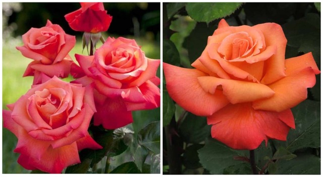 Цветки имеют классическую форму чайно-гибридных роз, но обычно появляются в кистях по 3-7 шт, по одному лишь изредка.