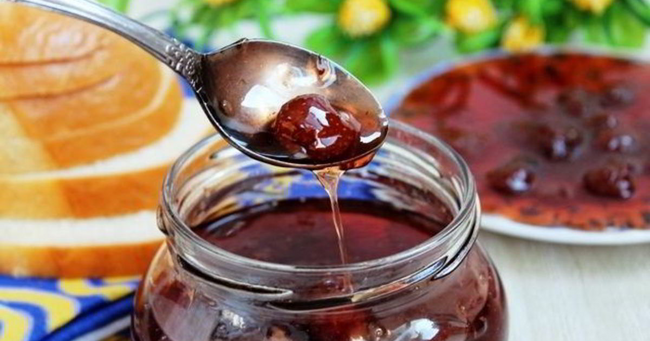 Вишневый джем по этому рецепту нужно варить максимум 4 минуты.Содержание чистого сахара минимально, а вкус получается очень насыщенным и ароматным. Такой джем можно использовать как начинку для капкейков, для блинчиков или даже подать к мясу!