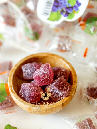 Мармелад изготовлен из натурального винограда, обладает приятным вкусом с ненавязчивой кислинкой, имеет нежную и мягкую структуру. Каждая мармеладка упакована в индивидуальную упаковку. Виноград содержит массу полезных веществ, витаминов и микроэлементов – например, цинк, железо, кальций, калий, магний, обладает противовоспалительным и антиоксидантным свойством.