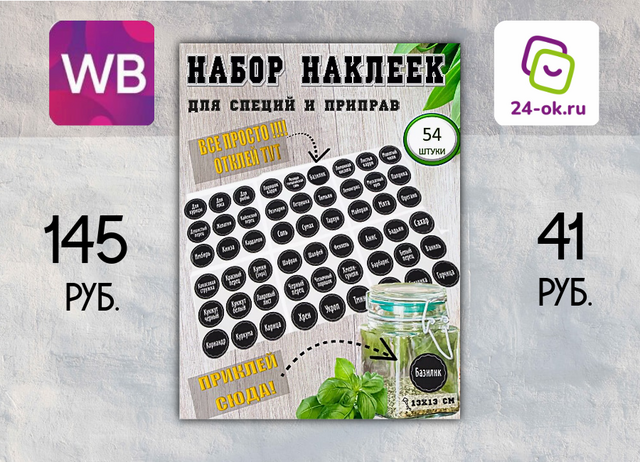 VETTA Наклейки на банки для специй и приправ, 54шт