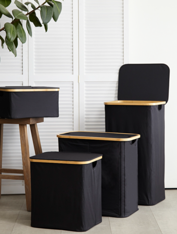 Корзина имеет надежный каркас из бамбука, благодаря чему держит форму и хорошо стоит на любой поверхности