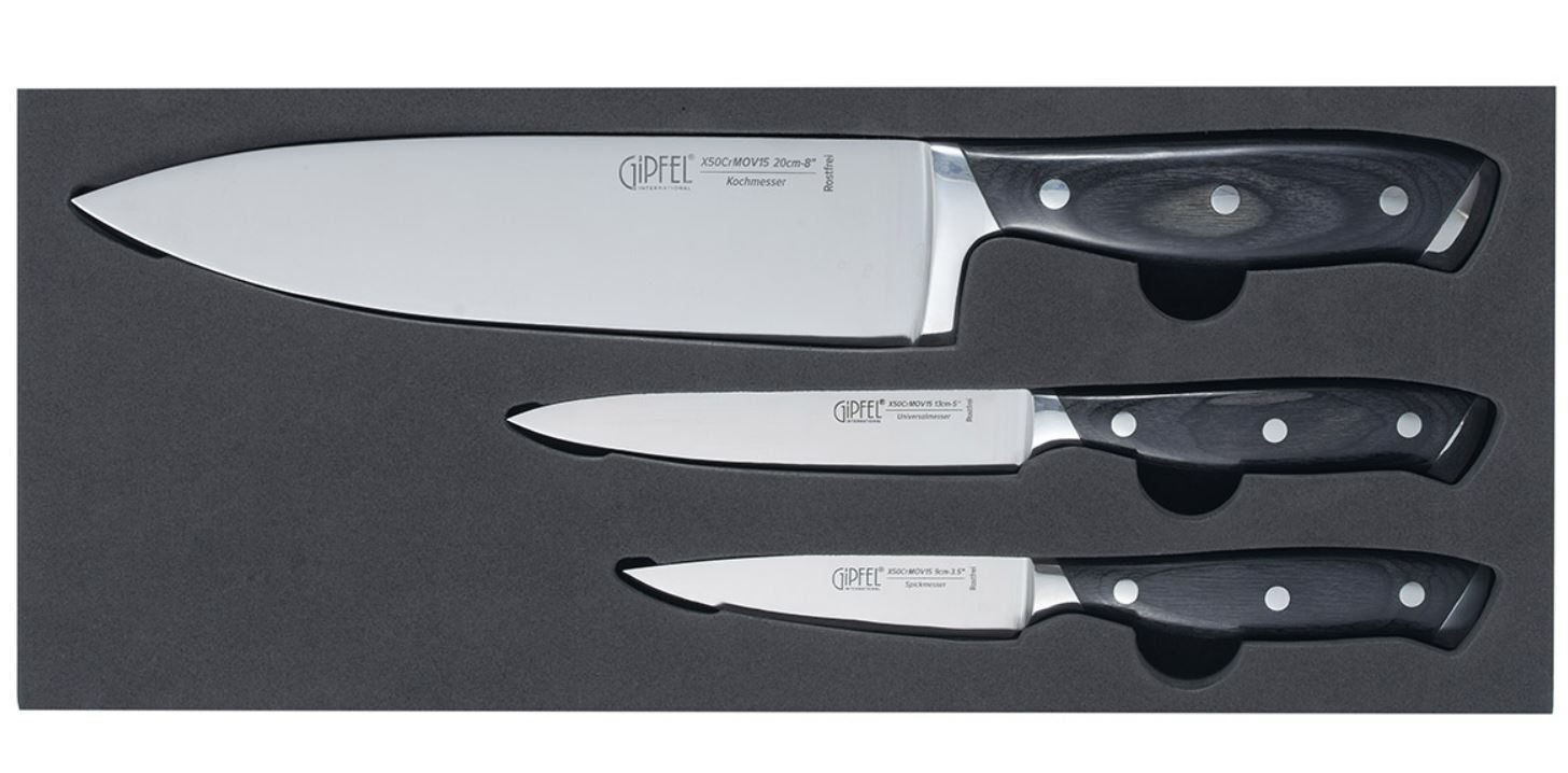 В составе самые необходимые ножи для ежедневного использования: нож поварской 20 см, универсальный нож 12,7 см, нож для чистки овощей 9 см.