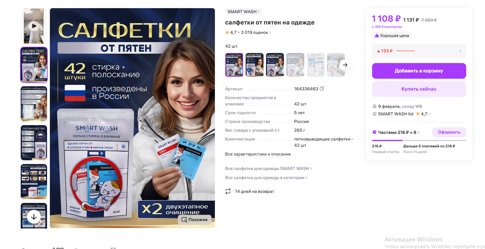 Упаковка 42 шт 396 р WB ̶1̶1̶0̶8̶ ̶р̶ ̶