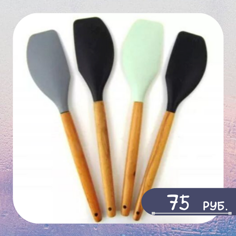 Лопатка силиконовая с деревянной ручкой 32 см.