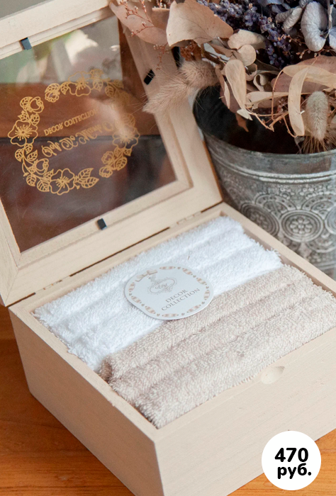 Набор махровых салфеток в подарочной деревянной упаковк