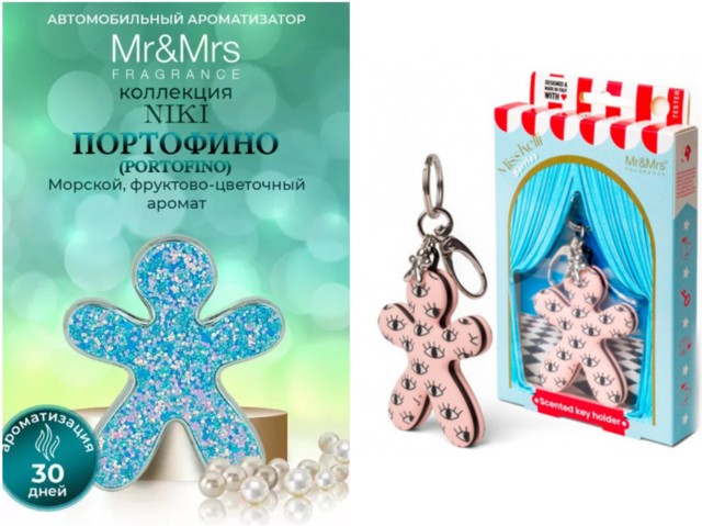 Ароматизатор для автомобиля и ароматизированный брелок в форме человечка с мини-шармом