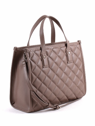 Сумка женская с одним отделением на молнии. Дополнительно закрывается на клапан, декорированный стёжкой. Внутри - открытый карман. Высота ручки - 60 м. Размеры 240х220х90