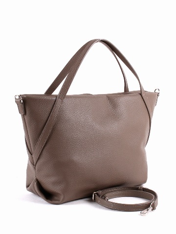 Мягкая женская сумка с одним отделением на молнии. Вмещает формат А4. На задней стенке - карман на молнии. Внутри - два открытых кармана и карман на молнии. Две ручки высотой 13 см. Максимальная длина съемного регулируемого ремня 122 см. Размеры 440х255х130