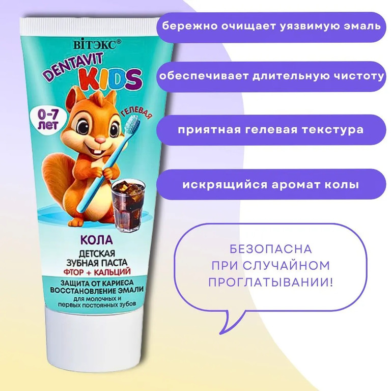 Зубные пасты Dentavit KIDS созданы специально для детей: они эффективно и бережно очищают молочные и постоянные зубы от налёта, не травмируют тонкую детскую эмаль, обеспечивают надежную защиту от кариеса.