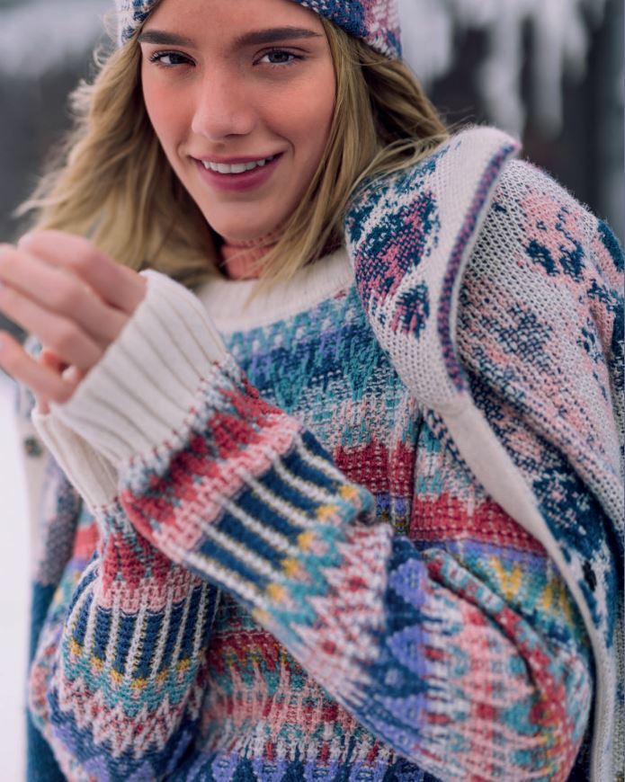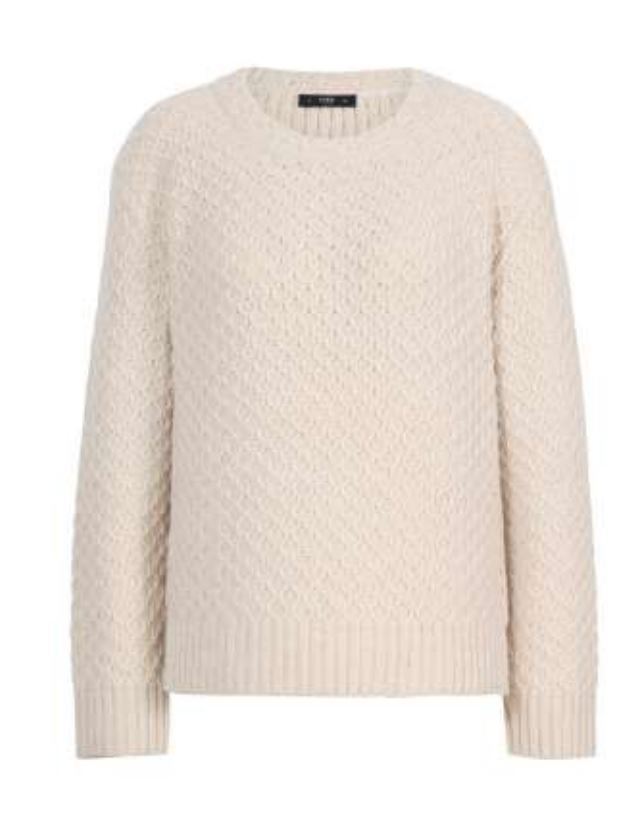 Смотрите видео !!!! и увидите девушку в пуловере с объёмной вязкой.