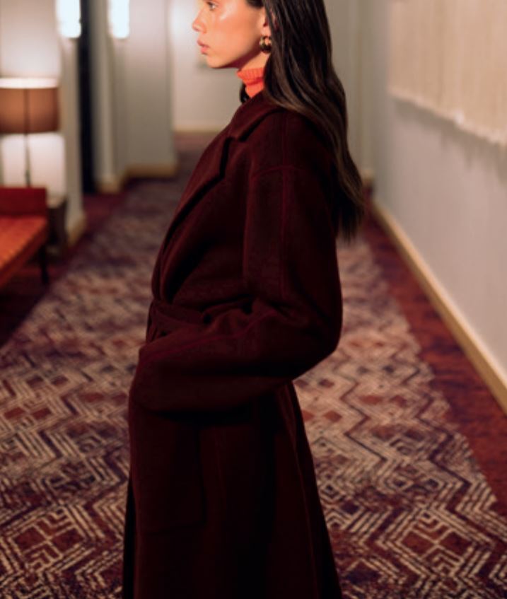Эта модель пальто сочетает в себе винтажное очарование и современную изысканность.
