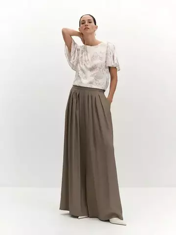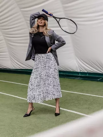Балансируйте верх и низ. Старайтесь выбирать одежду, которая добавляет объема в нижней части тела. Юбки и брюки с принтами, расклешенные модели, баски и плиссированные ткани — идеальные варианты.