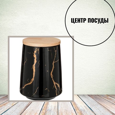 Nouvelle Банка для сыпучих продуктов (с бамбуковой крышкой) "Черный мрамор" d=10,5см. h=14см. v=720мл.