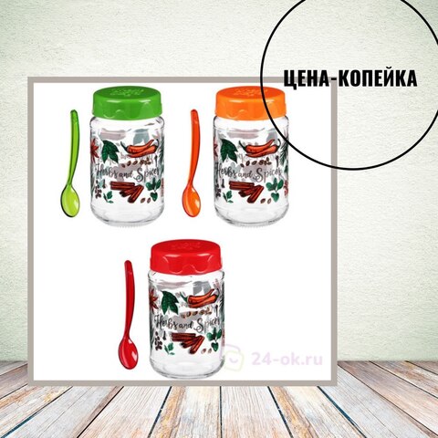Банка для специй с ложкой, 370мл, стекло, 3 цвета, 131507-800
