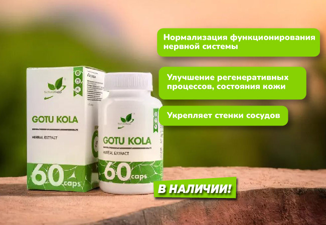 Готу Кола улучшает микроциркуляцию крови, в том числе в сердечной мышце и головном мозге. Иногда это растение называют "пищей для мозга", так как давно отмечено, что прием его способствует восстановлению энергетических запасов в мозге, увеличению умственных и физических способностей, снятию стресса.