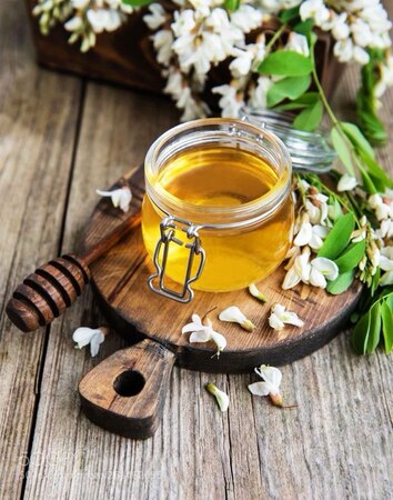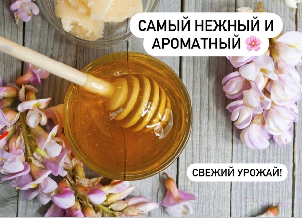 Мед с акации— прозрачный, с тонким цветочным послевкусием.