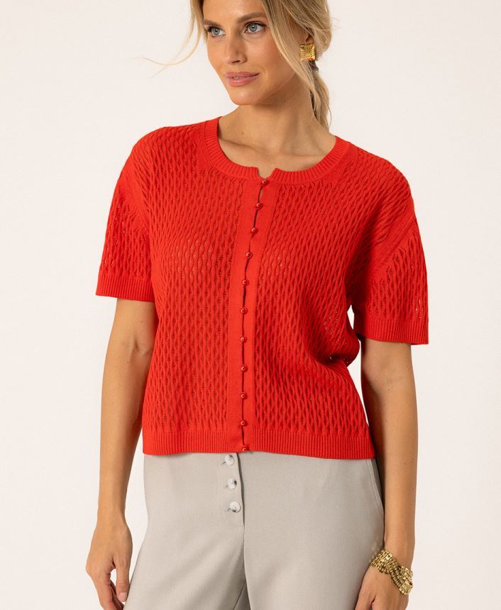 Ажурный джемпер, дополненный планкой с пуговицами. В каталоге есть ещё в молочном цвете.