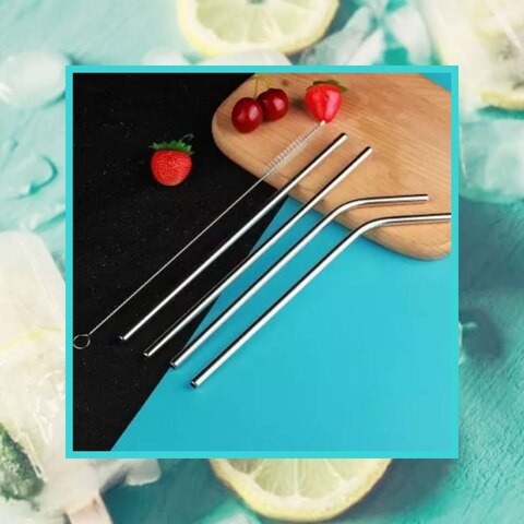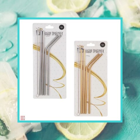 Набор многоразовых трубочек из нержавеющей стали со щеткой, 215мм, 4 шт, 2 цвета