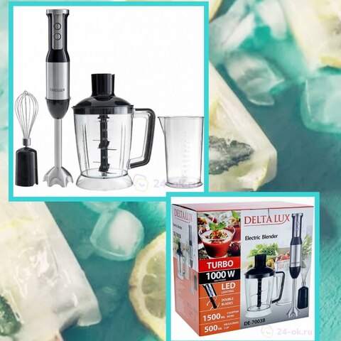 Блендер погружной 1000 Вт DELTA LUX DE-7003B с измельчителем, венчиком, стаканом, черный