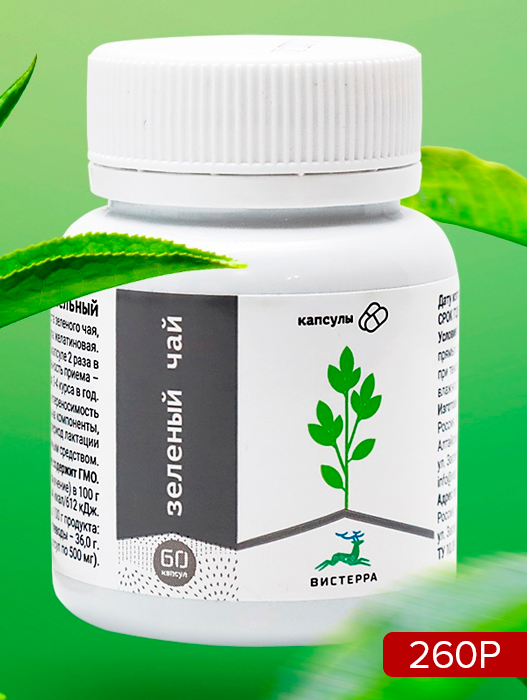 Если вы поклонник кофе, но хотите позаботиться о своём организме, можете попробовать экстракт зелёного чая в капсулах от «Вистерра».