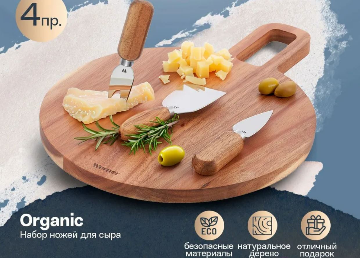 Прекрасный вариант подарка! Набор ножей для сыра и доска из акации в комплекте, разные варианты в каталоге!