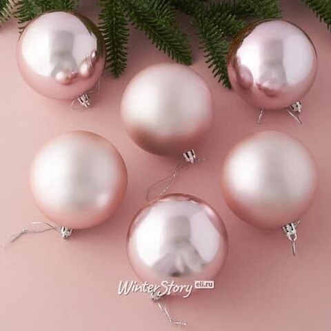 Набор пластиковых шаров Liberty 8 см, 6 шт, светло-розовый mix (Winter Deco)